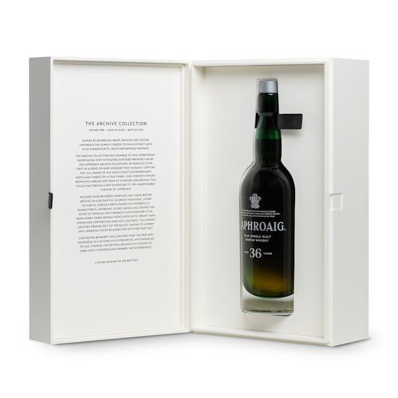 A decade-by-decade journey of flavour brought to life, The Archive Collection 36 Year Old is first in a new series of highly limited aged whiskies. This release is housed in custom-made, hand-blown glass bottles inspired by the sea glass found on the beaches of Islay.